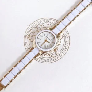 The white dial with a gold-colored index is an elegant and traditional solution, which allows for simple and intuitive time reading. Also notable is the durable mineral glass, which can be polished if scratched. The entire watch is encased in a white and gold-colored envelope made of durable stainless steel, which adds character and allows you to focus attention on the elegant dial. The watch’s bracelet, made of durable stainless steel in a color combination of white and gold, ensures not only comfort, but also resistance to rust. Its simple and effective clasp ensures that the watch won’t detach accidentally, while allowing easy removal and putting on the wrist.