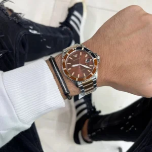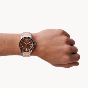 Zegarek Emporio Armani AR11340, znany również jako “Mario”, to elegancki czasomierz, który łączy klasyczny design z nowoczesnym stylem. Jego koperta wykonana jest ze stali nierdzewnej, brązowa tarcza kontrastuje z subtelnymi wskazówkami i indeksami w kolorze różowego złota. Zegarek posiada funkcję datownika, a jego subtelny wygląd sprawia, że jest idealny zarówno na co dzień, jak i na specjalne okazje. Dzięki wysokiej jakości materiałom, AR11340 to połączenie wyrafinowanego stylu i funkcjonalności.