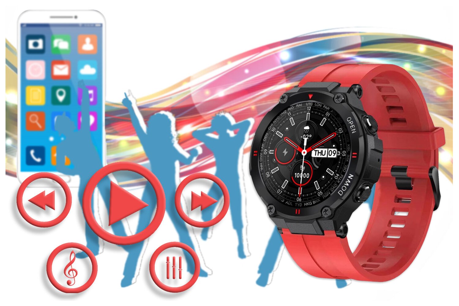 The smartwatch, when connected with the app, displays weather data. Now all it takes is one look at the smartwatch and you already know what the weather will be like in the near future. Thanks to the weather on the smartwatch, you can better plan your activities and dress appropriately for the surrounding weather!
