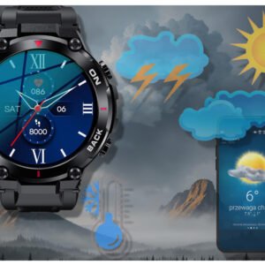 The smartwatch, when connected with the app, displays weather data. Now all it takes is one look at the smartwatch and you already know what the weather will be like in the near future. Thanks to the weather on the smartwatch, you can better plan your activities and dress appropriately for the surrounding weather!