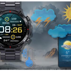 The smartwatch, when connected with the app, displays weather data. Now all it takes is one look at the smartwatch and you already know what the weather will be like in the near future. Thanks to the weather on the smartwatch, you can better plan your activities and dress appropriately for the surrounding weather!
