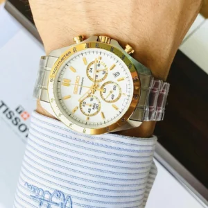 The Seiko SBTR024 men’s watch is the quintessence of timeless elegance combined with the dynamic spirit of sporty style. Its design exudes class and stylish sophistication, making it the perfect companion for a man who appreciates both tradition and an active lifestyle. The body of the watch, made of high-quality materials, exudes solidity while displaying subtle finesse in every detail. The dial, kept in a minimalist style, emphasizes legibility and aesthetics, making the watch a perfect match for both formal attire and sporty outfits. The timeless character of the Seiko watch is highlighted by the precise mechanism inside the envelope, ensuring not only reliability, but also precision time indication. In addition, the watch’s classic bracelet strap adds to its elegance, while emphasizing the sporty nature of the Seiko brand. It is not only a tool for measuring time, but also an expression of personal style and self-confidence. This men’s watch by Seiko is a combination of timeless class, elegance and sporty flair, which will ensure that the man wearing it will always be in fashion, regardless of the circumstances.