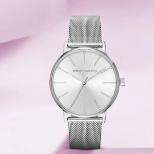 Armani Exchange to pełnoprawna marka stworzona przez znanego na całym świecie projektanta Giorgio Armaniego, zachowując tą samą jakość i prestiż,co jej bliźniacza marka Emporio Armani czy Armani Jeans. Również zasila sektor dóbr luksusowych. W tym przypadku jednak wśród odbiorców są głównie osoby młode. Zegarek Armani Exchange AX5535 swój modny design zawdzięcza rewelacyjnemu połączeniu koperty w kolorze srebrnym, z bransoletą typu mesh i srebrną tarczą. Ten damski model znakomicie sprawdzi się jako modny dodatek na nadgarstku każdej nowoczesnej kobiety. Jak wszystkie zegarki AX w niesamowity sposób łączy w sobie markowy design, najmodniejsze trendy oraz ponadczasową, wyrafinowaną elegancję.