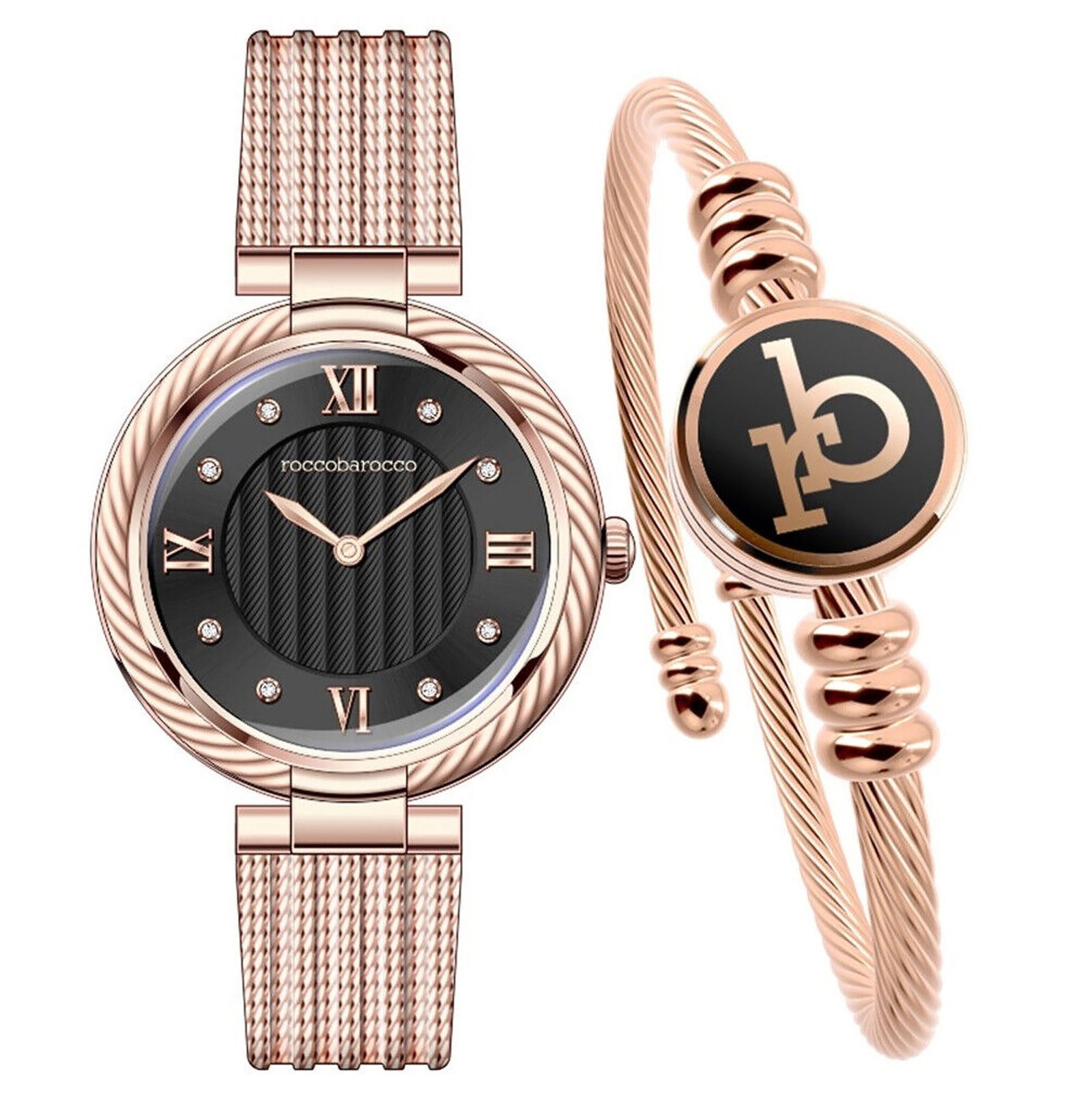 RoccoBarocco women’s watch is not only a practical tool for measuring time, but also an elegant accessory that highlights the style and personality of the woman wearing it. This watch combines classic design with subtle designer details, creating a striking and unique product.