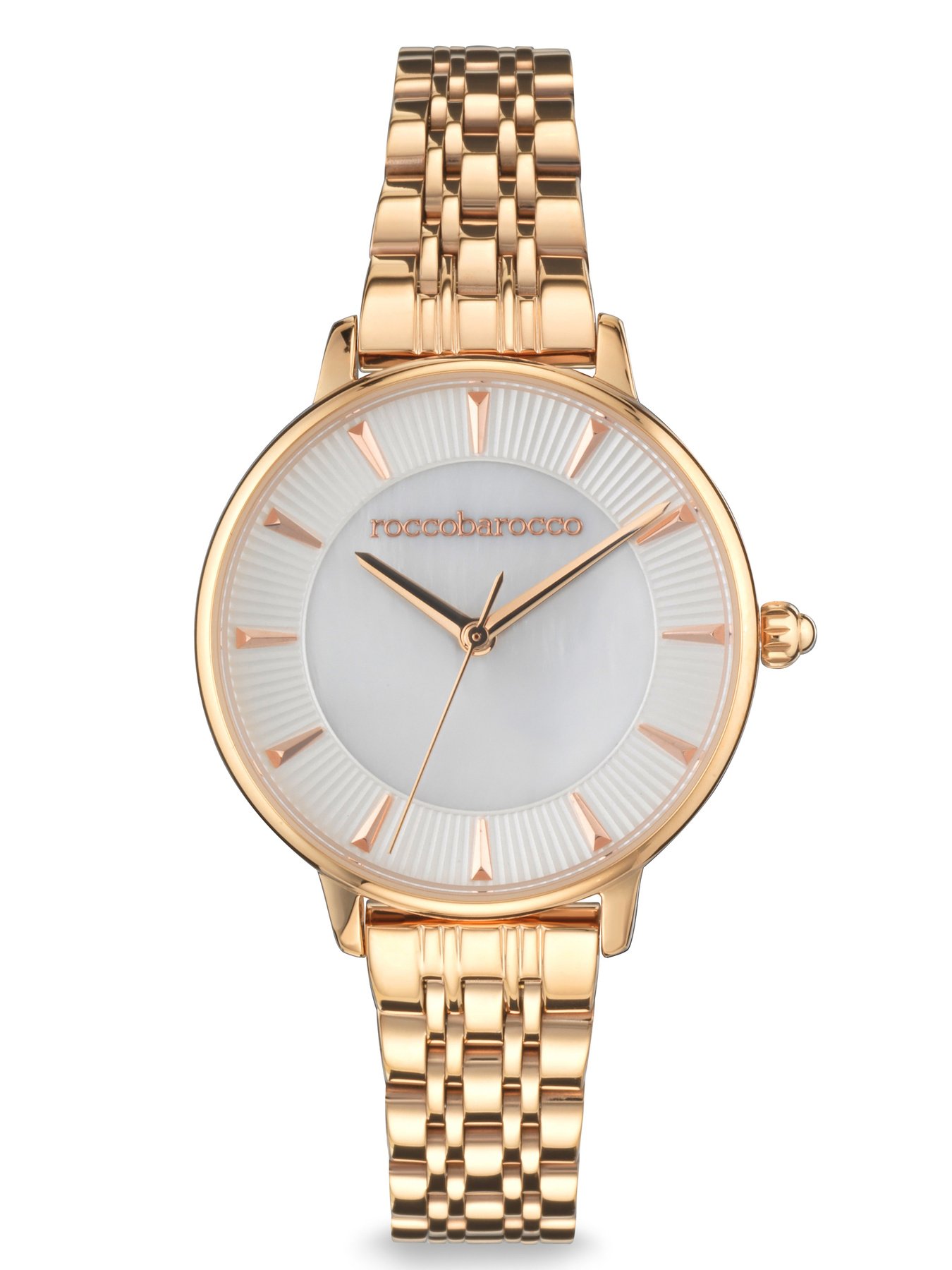 RoccoBarocco BOXSET RB.4659L-03M women’s watch is designed for women who appreciate delicate accessories. The beautiful RoccoBarocco set RB.4659L-03M in rose gold with a bracelet of the same color and a pearl dial, will surely appeal to every woman. The RoccoBarocco RB.4659L-03M watch is equipped with a precise quartz movement.