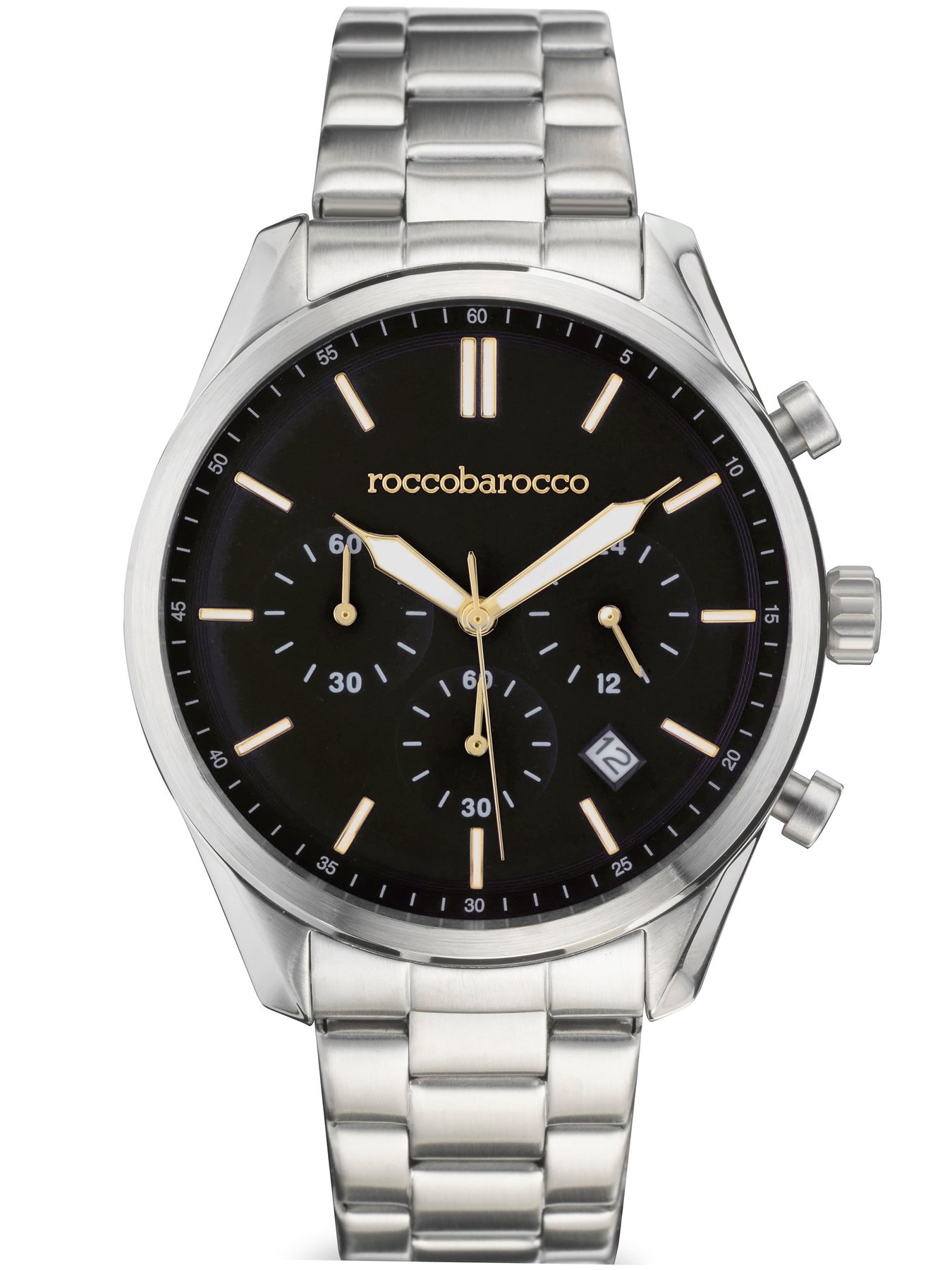 The RoccoBarocco men’s watch combines exceptional style, functionality and precision in a single device. This prestigious watch impresses with both its modern design and high quality workmanship, making it the perfect addition to any man’s closet. The RoccoBarocco watch is equipped with a precise quartz movement, which guarantees the accuracy of the time indication. The watch runs smoothly and reliably, so you can always rely on its indications. This watch exudes elegance and stylish minimalism. Its round envelope is made of durable stainless steel, ensuring durability for many years. The black dial with chronograph and date, as well as delicate gold indexes and hands, gives it a unique character. The watch also has WR50 water resistance, which makes this model resistant to splashes, such as when washing the car.