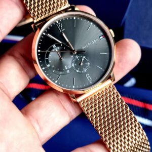 Men’s Tommy Hilfiger Brooklyn 1791506 watch will be perfect for elegant styling. the rose-gold envelope and bracelet are made of high-quality stainless steel. The black dial is equipped with a date and daylight saving time and protected by mineral glass.