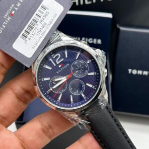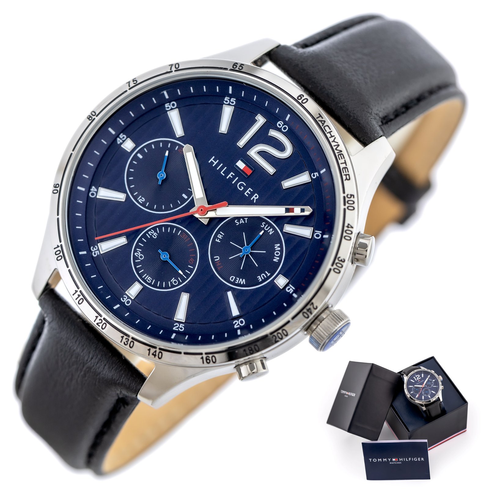 Tomy Hilfiger 1791468 men’s watch is a combination of elegance, classics and comfort. The envelope is made of stainless steel in silver color. On the navy blue dial, protected by mineral glass, you will find a date pad indicating the day of the month, as well as sub-dials that are indications of the days of the week, the current date and 24-hour daylight saving time. The black colored natural leather strap makes the Tommy Hinfinger timepiece very comfortable to wear.