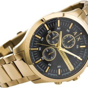 Zegarek męski Armani Exchange AX2137 to nowoczesny i elegancki model, który doskonale uzupełni męską garderobę. Jego klasyczna złota kolorystyka sprawia, że zegarek będzie pasować do każdej stylizacji, zarówno casualowej, jak i bardziej formalnej. Koperta z wysokiej jakości stali szlachetnej o szerokości 46 mm została połączona ze złotą bransoletą, która gwarantuje wygodę i trwałość. Precyzyjny mechanizm kwarcowy zapewnia niezawodność, a mineralne szkło chroni tarczę przed zarysowaniami. Zegarek jest odporny na wodę do 50 metrów, co sprawia, że jest odporny na zachlapania i kontakt z wodą w codziennym użytkowaniu.