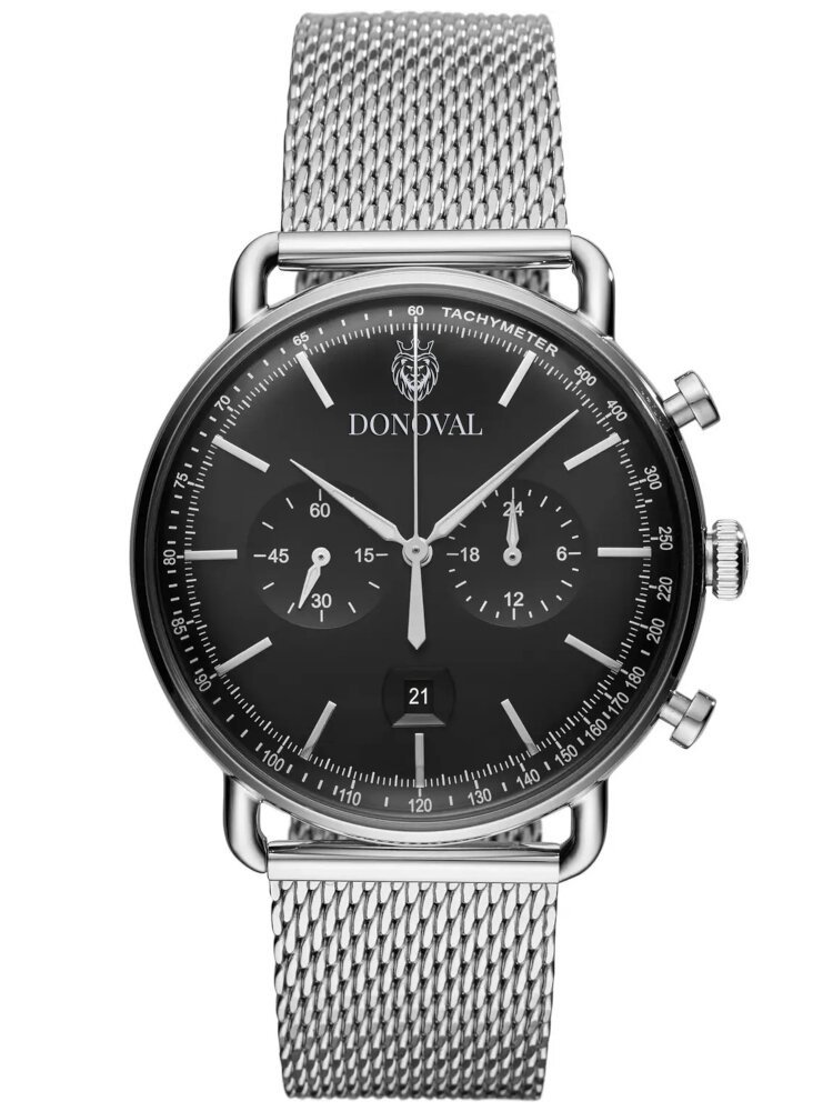 The Donoval Chronostar DL0028 wristwatch is an elegant, classic men’s timepiece – perfect for everyday wear, as well as for special occasions. The envelope and mesh bracelet are made of stainless steel – this ensures many years of durability. On the navy blue dial protected by mineral glass you will find the day of the month date, subdials that are chronograph indications and hour markers in white. The watch is powered by a Miyota quartz movement.
