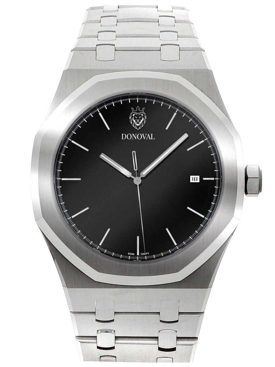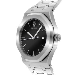 The Donoval Otto DL0007 wristwatch is a stylish men’s timepiece – ideal for everyday use, as well as for special occasions. The envelope is made of stainless steel and has a diameter of 41 mm, also the bracelet is made of stainless steel. The black dial protected by mineral glass features a day-of-the-month date and hour markers in silver. The watch is powered by a Miyota quartz movement.
