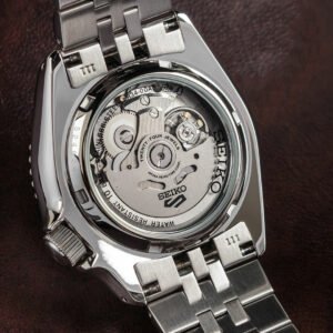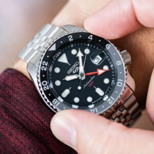 The Seiko 5 Sports Automatic GMT SSK001K1 is a men’s timepiece that perfectly combines elegant design with functionality, perfect for men who appreciate modern touches in a classic setting. The watch is powered by a Seiko 4R34 automatic movement, which ensures reliability and a 41-hour power reserve. The blue dial, protected by hardened mineral glass, not only gives the watch a modern touch, but also ensures excellent legibility. The dial of the Seiko SSK001K1 watch is legible even in the dark. This is made possible by the Lumibrite coating, which is applied to the hands and hour indexes.